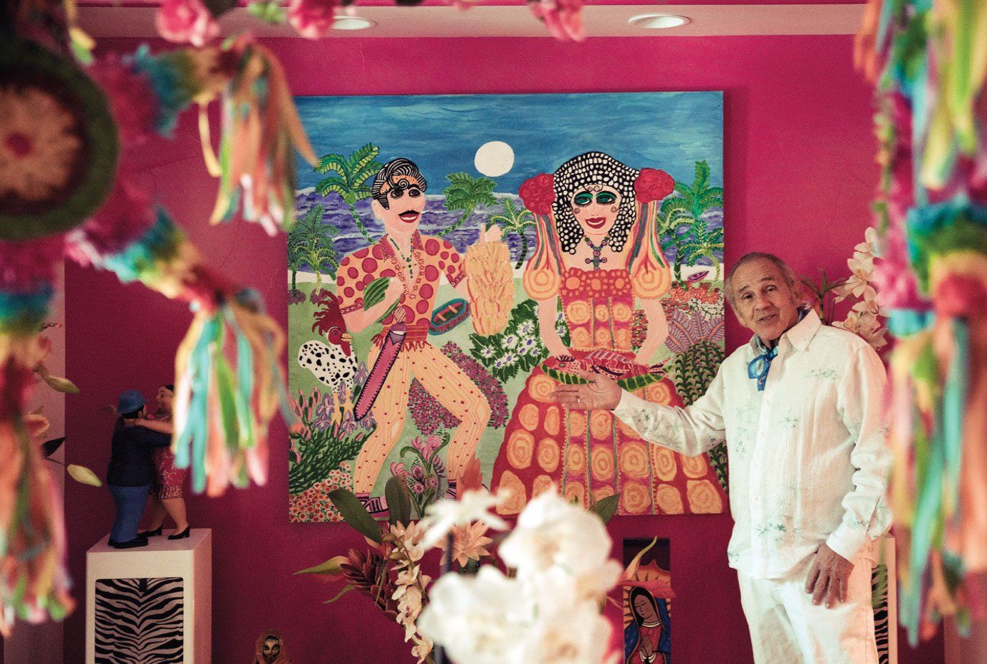 Many of his colleagues and admirers point to Serna’s dedicated work in the Los Angeles-based theater group Synergy Trust as the origin of his remarkable improvisational talents. Serna says it goes back much further. “I believe I’ve been doing improv since I was about 3,” says Serna, dapper and relaxed in a pink linen sport coat as he sits back on a couch in the guest quarters of his bright Rancho Mirage home. From the street, the house appears indistinguishable from its tightly wedged neighbors, but inside, it’s like stepping through a portal that lands you in a lush and colorful oasis in Coyoacán or Teotitlán del Valle. Every vibrantly hued room — designed and decorated by Serna’s wife, Diane — is filled with Mexican folk art and Serna’s own paintings, all of which tell a story. “My grandfather built a boxing ring across from our house on the corner. One day I was up in the ring and I was playing around like I was fighting and fell. Everyone laughed. I liked it. I did the exact same thing again. This time no one laughed. And, so, I learned my first important lesson about acting.”